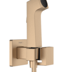 Bidette hand shower set including hand shower (Ø 28 mm), shut-off valve with integrated holder, and 1250 mm shower hose. Max. flow rate: 6.2 l/min at 3 bar; operating pressure: 1–10 bar. Features pivot connector (tangle-free), conical nuts on both hose ends, rinseable filter washer, and non-return valve. Wall-mounted with metal supports and screw fastening. Not suitable for countries requiring EN 1717 compliance; not intrinsically safe against backflow. Connection: G ½. EU taxonomy: max. 8 l/min – Do No Significant Harm (DNSH).