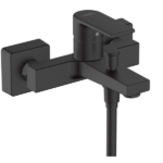 Delivers up to 22.5 l/min for bath spout and 15.7 l/min for hand shower at 3 bar. Features ceramic cartridge, automatic-reset diverter, silencer, adjustable temperature limiter, and DN15 S-connections.