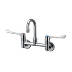 Markwik 1/2″ wall mounted dual control mixer with 150mm levers and swivel spout.  When taps are closed the levers are parallel to the wall.  Suitable for low and high pressure systems.  Single flow mixers require balanced supplies and an appropriate back flow prevention device.