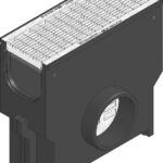 RECYFIX STANDARD 150 – Trash box made of modified PP, lateraltwo-sided preformed pipe connection element DN/OD 200, with removable silt bucket made of galvanised steel, suitable for both-sided connection of channel types RECYFIX STANDARD 150,  withmesh grating, mesh width 30/10 mm, galvanised, with locking device, loading capacity from A 15 – B 125 according to EN 1433, L/W/H 500x210x500 mm, item no. 40156