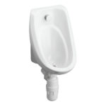 Wall urinal in vitreous china for concealed plumbing.